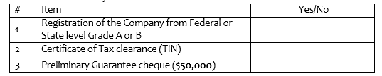 - Registration certificate from the concerned authorities in Federal/state level Grade A or B.