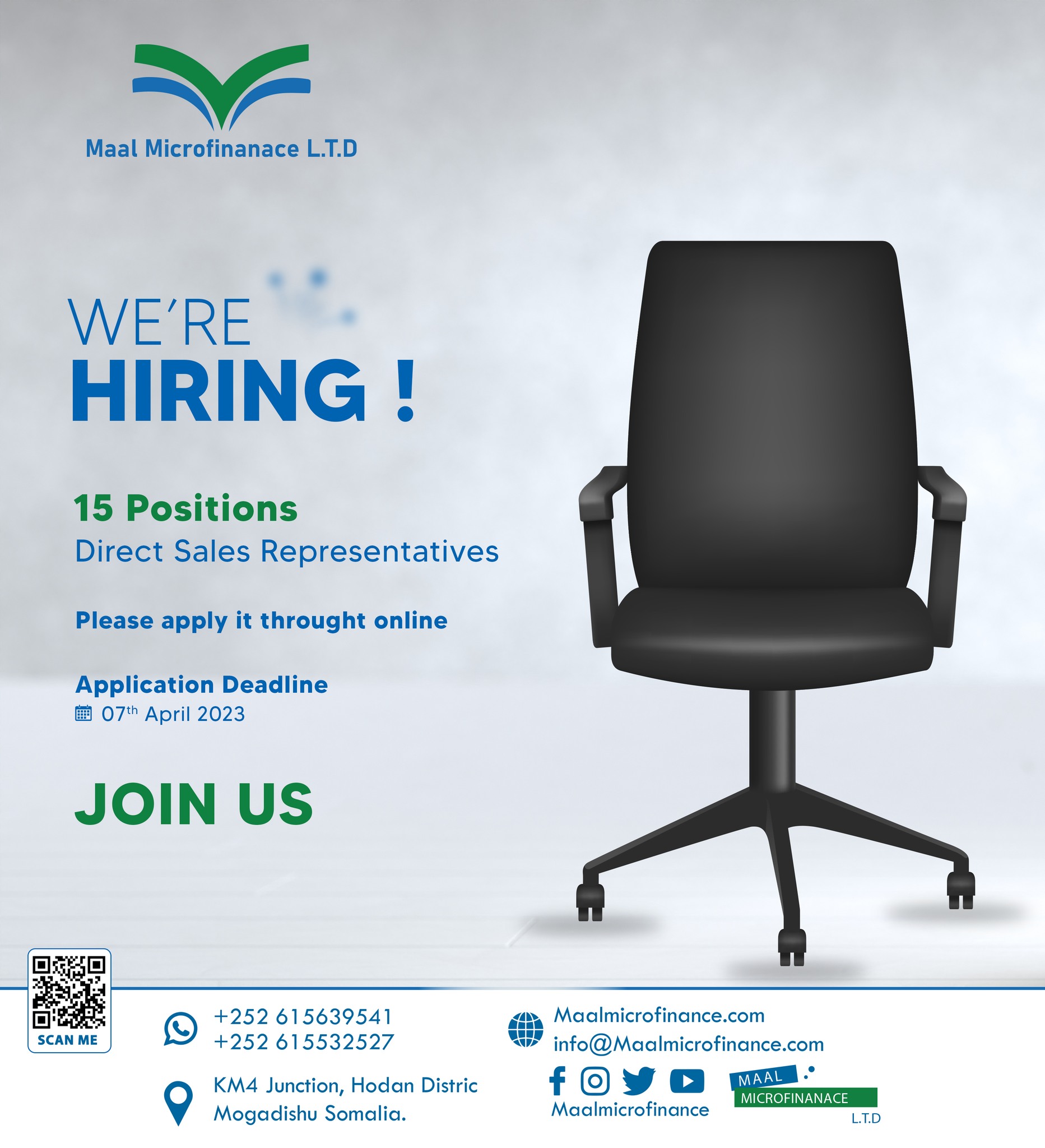Maal MFI, Waxa ay soo bandhigeysaa fursad shaqo oo ah Direct Sales Representatives – 15 Positions.