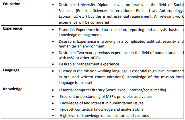 (MSF is an equal Employer and does not charge any application/recruitment or training)